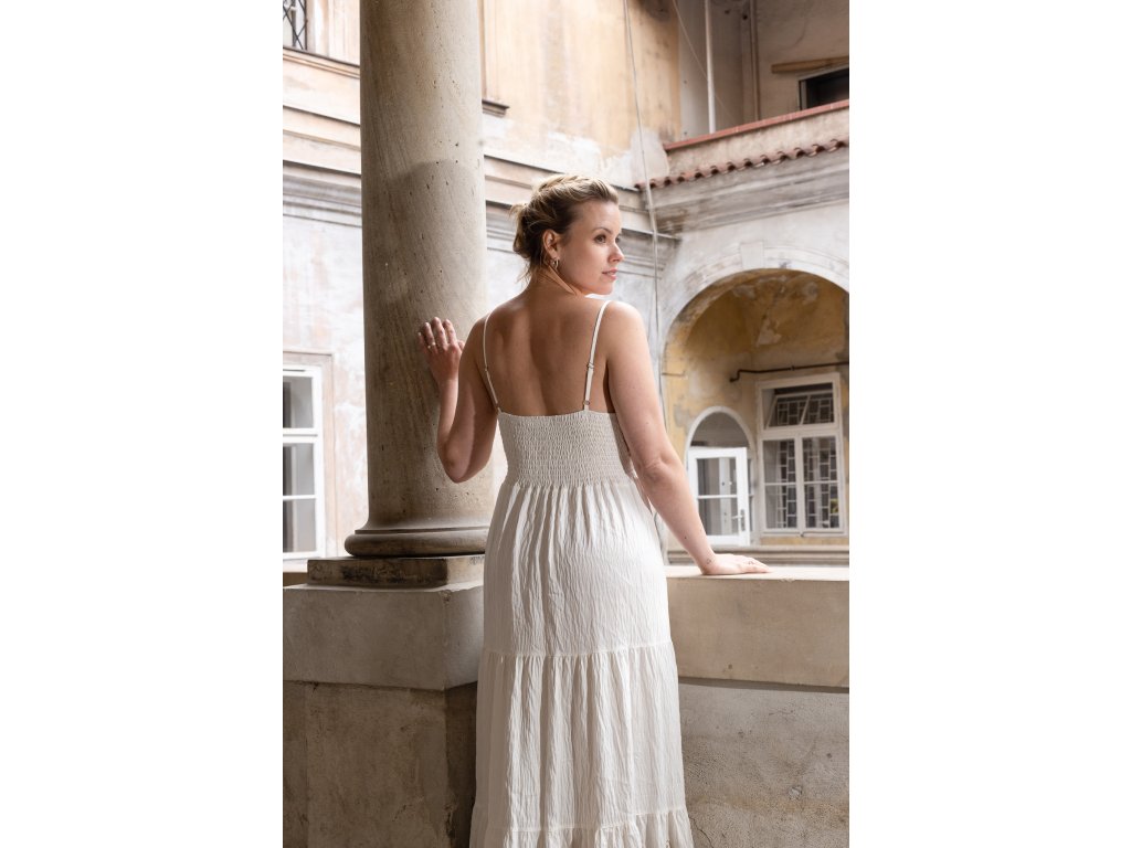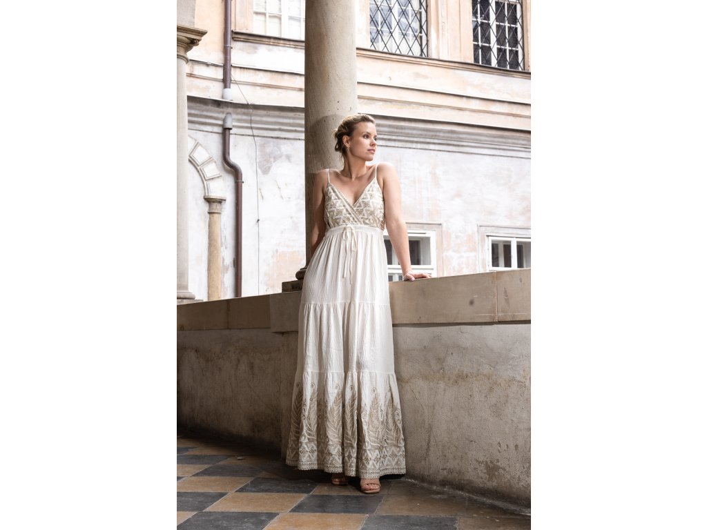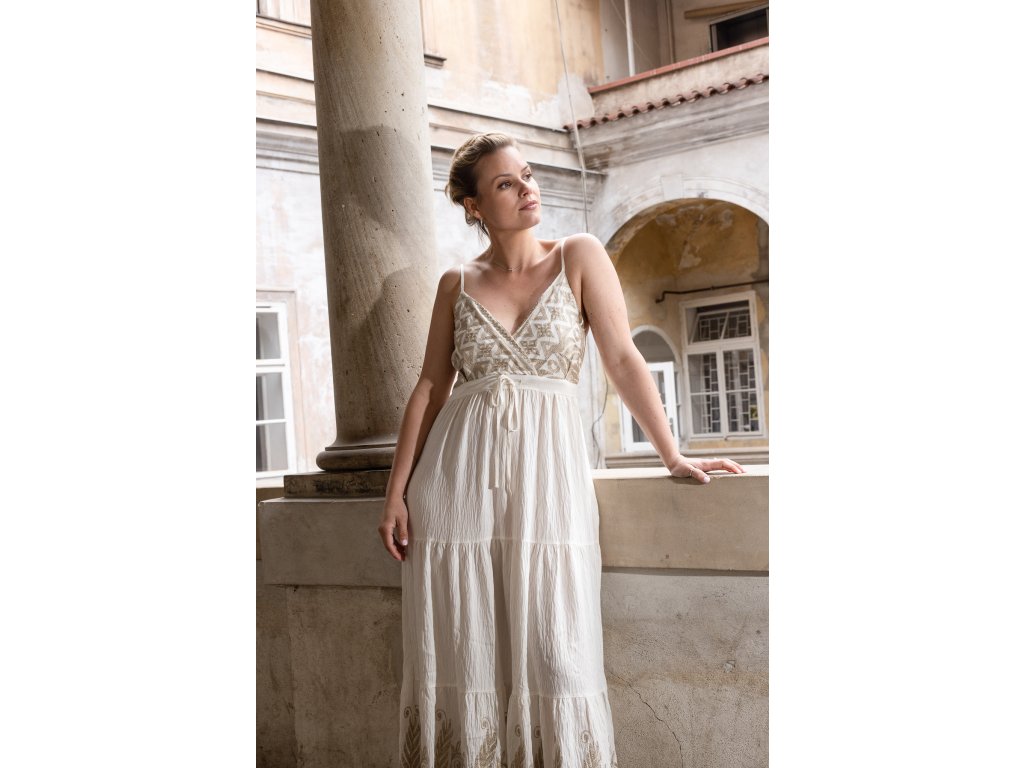 Krásné dlouhé šaty se zdobeným vyšíváním.