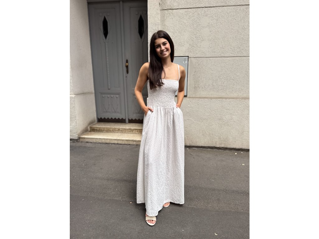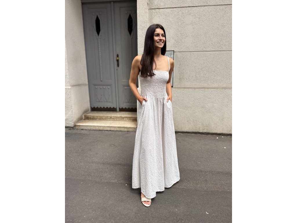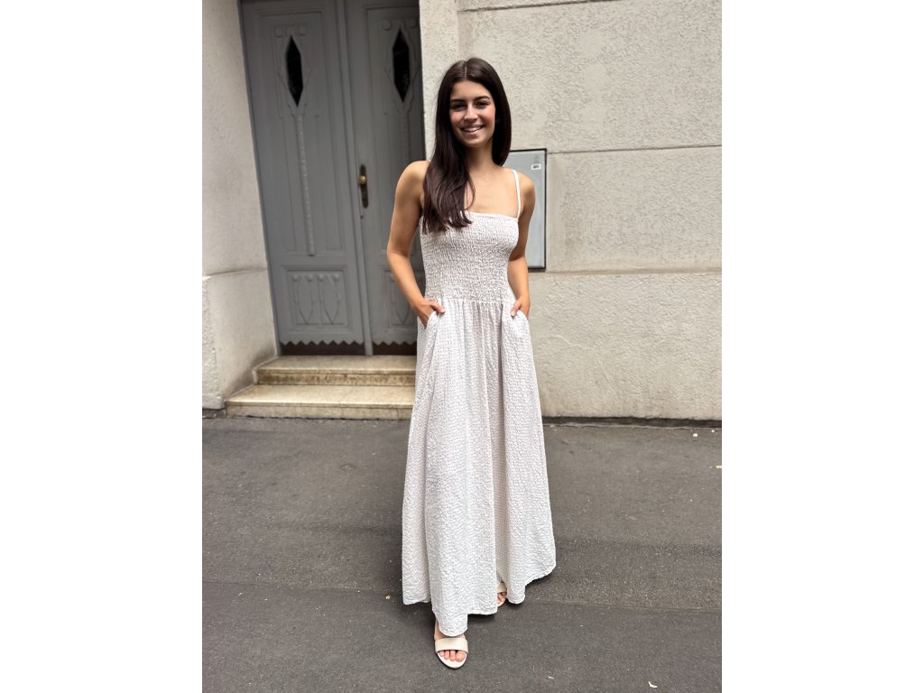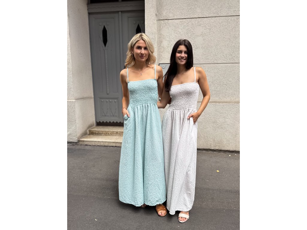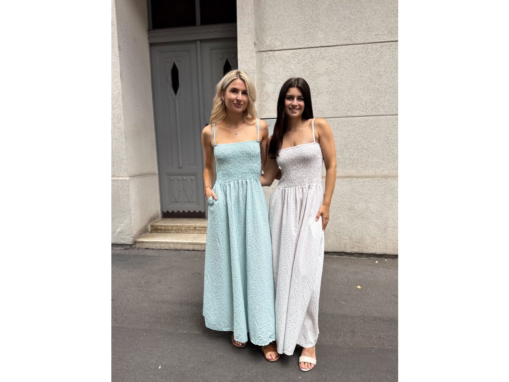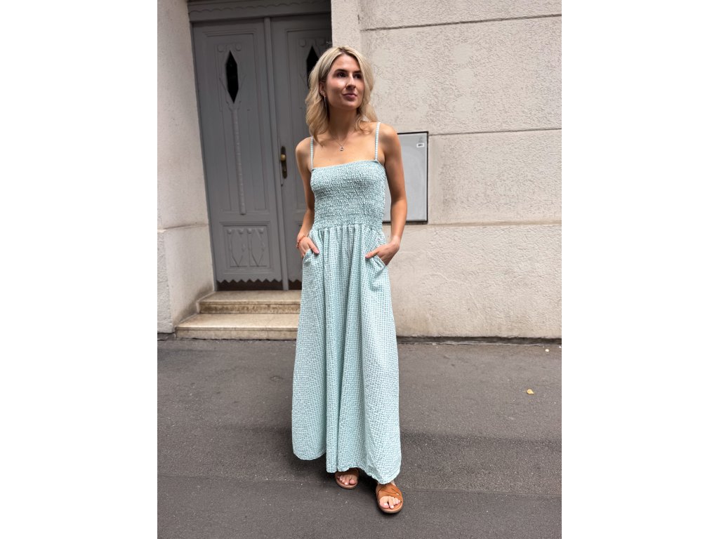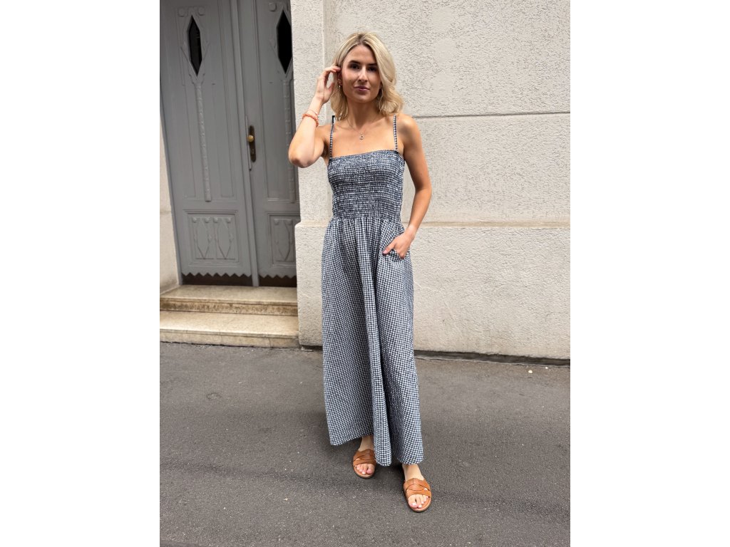 Dlouhé kostkované šaty s kapsami a nastavitelnými ramínky.