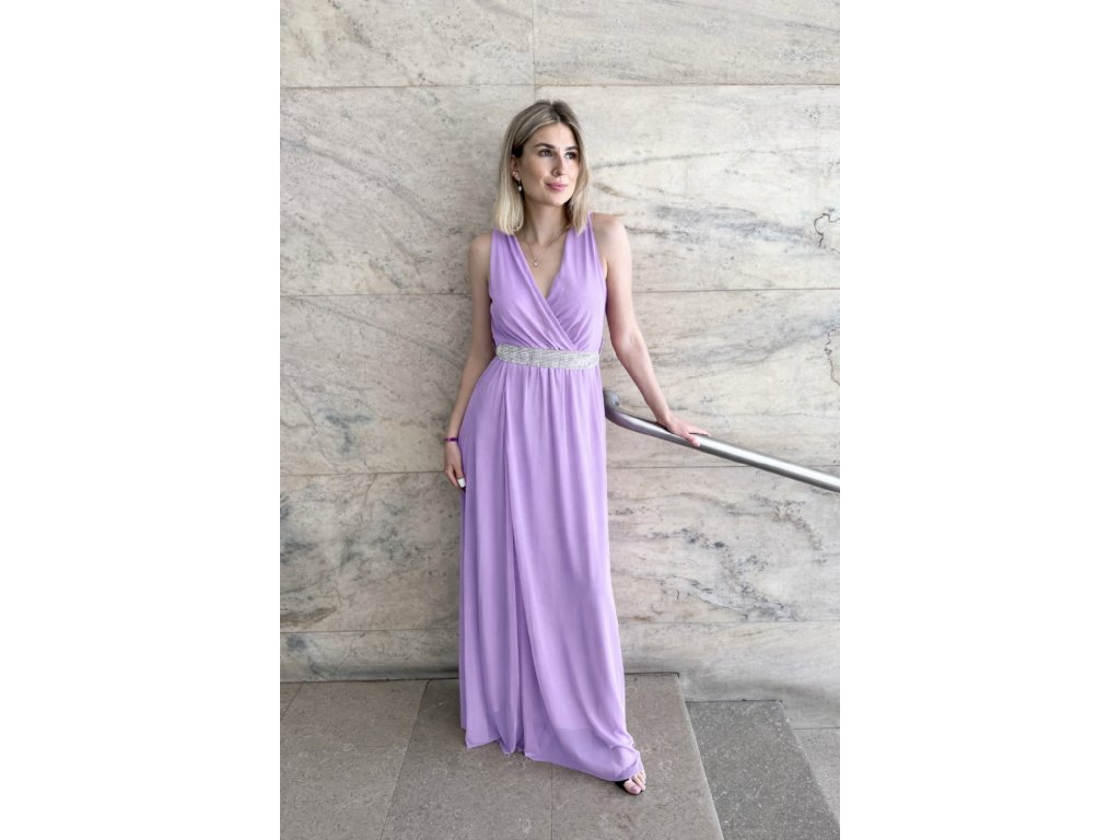 Dlouhé tylové šaty s rozparkem, zdobeným páskem (lze sundat) a všitou podprsenkou.