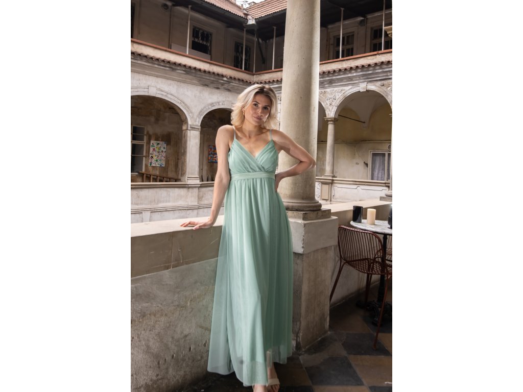 Dlouhé tylové šaty na tenká nastavitelná ramínka, s všitou podprsenkou a stuhou.