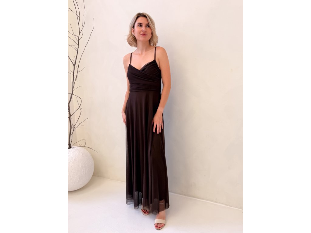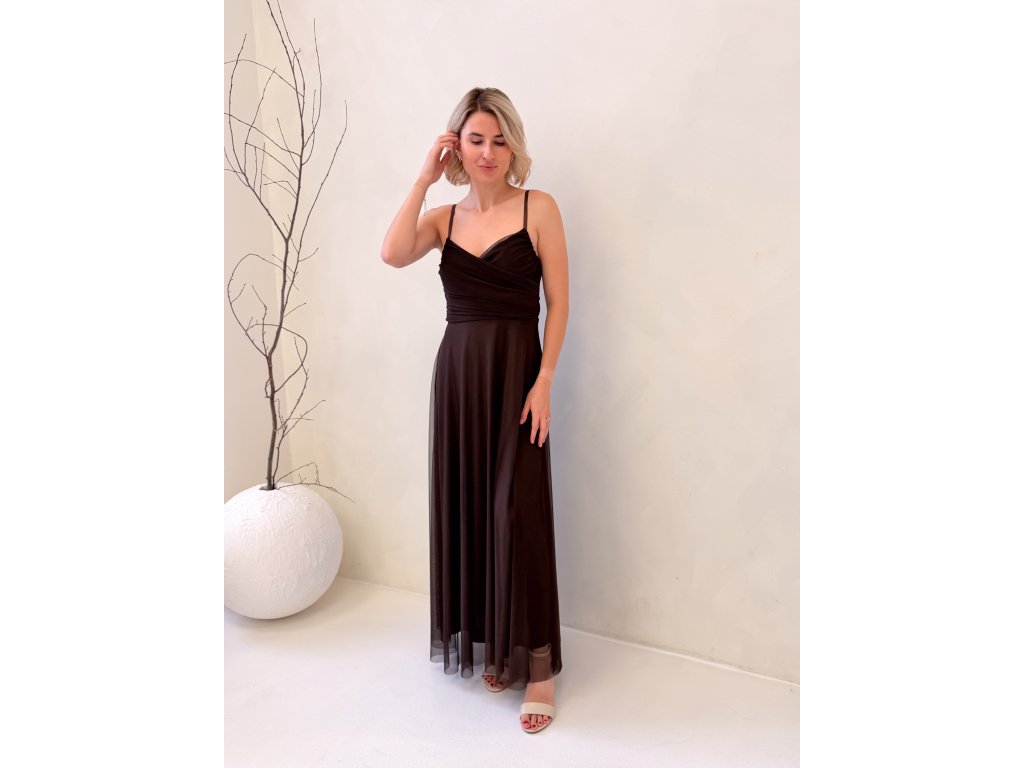 Dlouhé tylové šaty Mia - Čokoládová barva