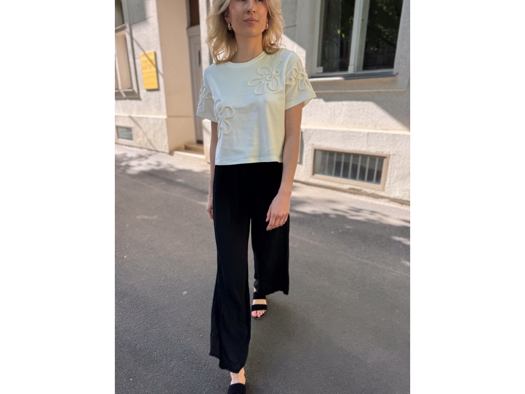 Volné lehké kalhoty v pase na gumu. Látka je "vroubkovaná".