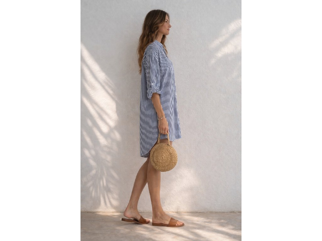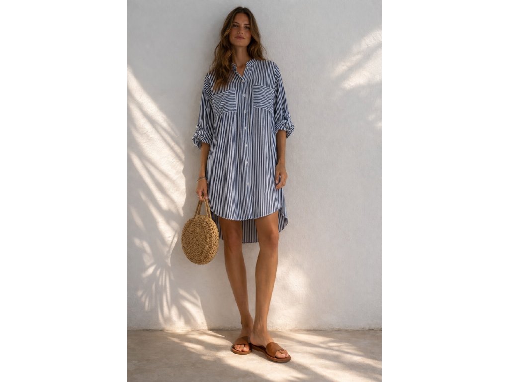 Dlouhá košile s proužky. Vhodná přes plavky nebo jako doplněk letního outfitu.