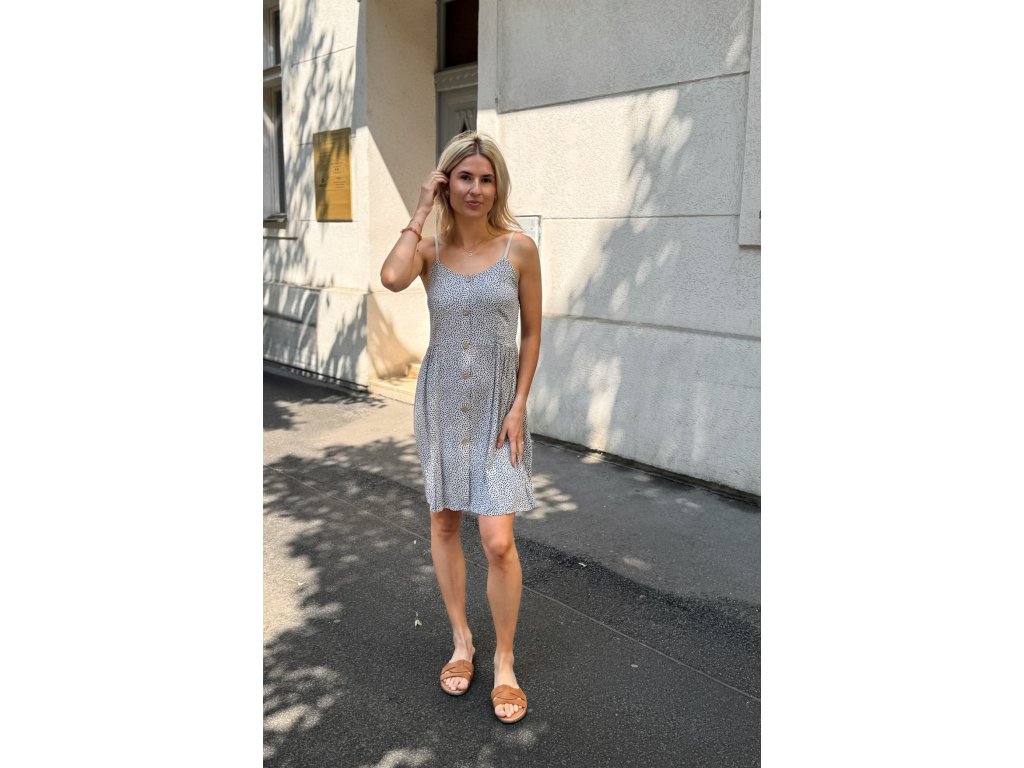 Krátké letní šaty s knoflíky a nastavitelnými ramínky.