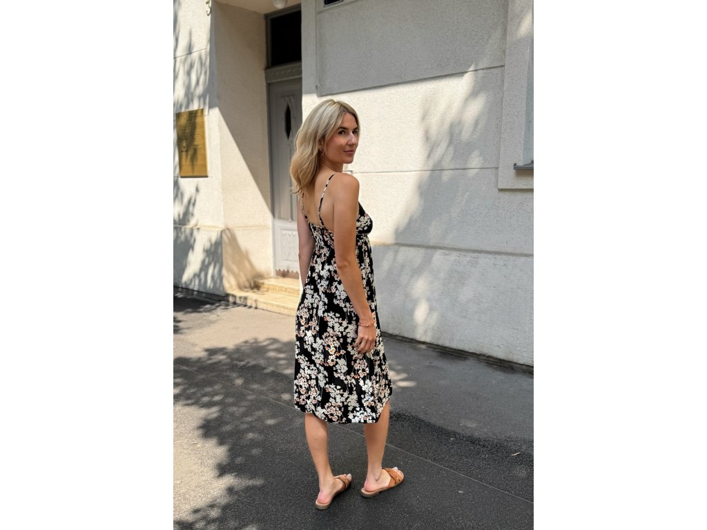 Midi šaty s kytičkami a tenkými nastavitelnými ramínky.