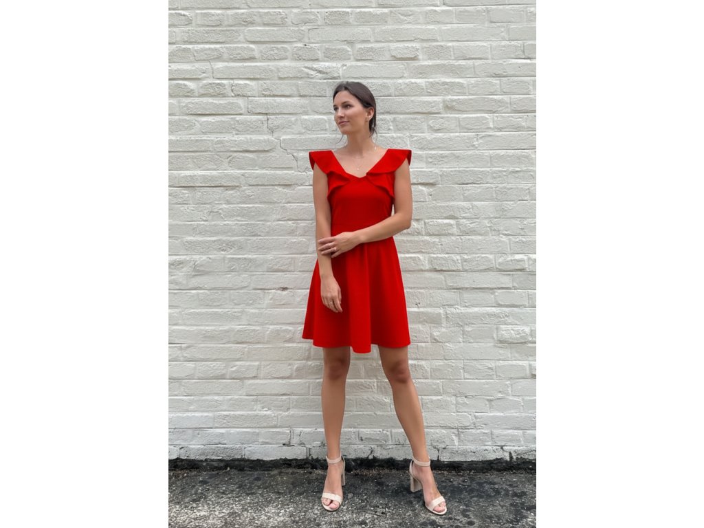 Krátké šaty s volány, překříženými zády a áčkovou sukní.