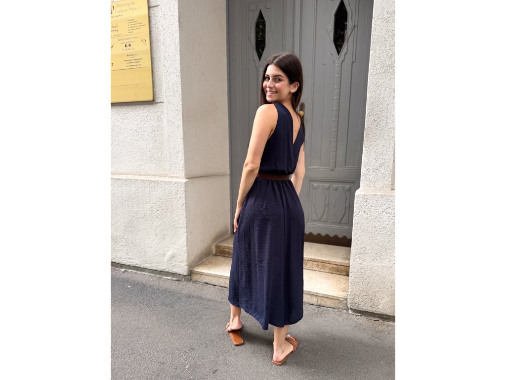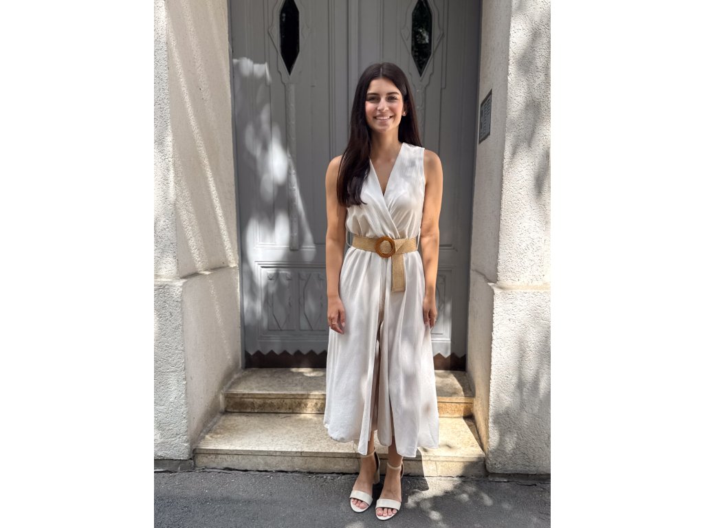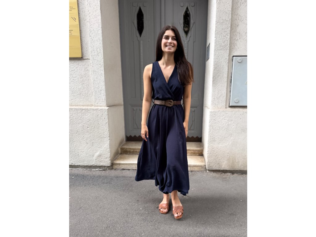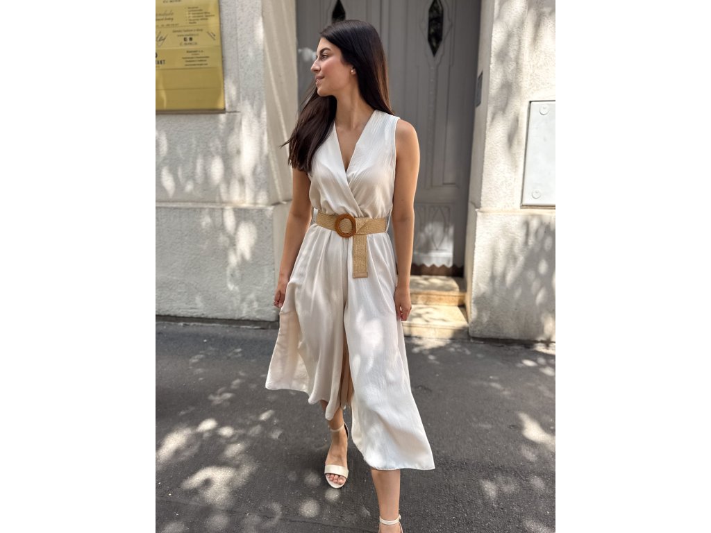 Overal se širokými nohavicemi, působí jako šaty. S páskem.