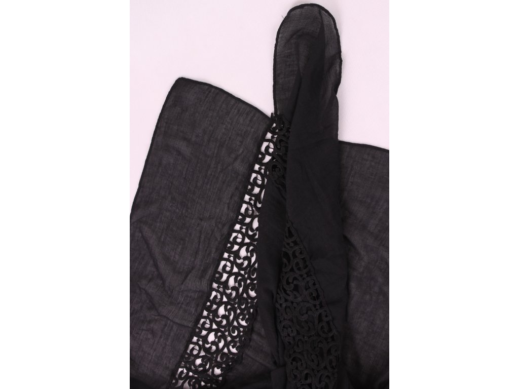 Elegantní, jemný šátek s vyšívaným pruhem.