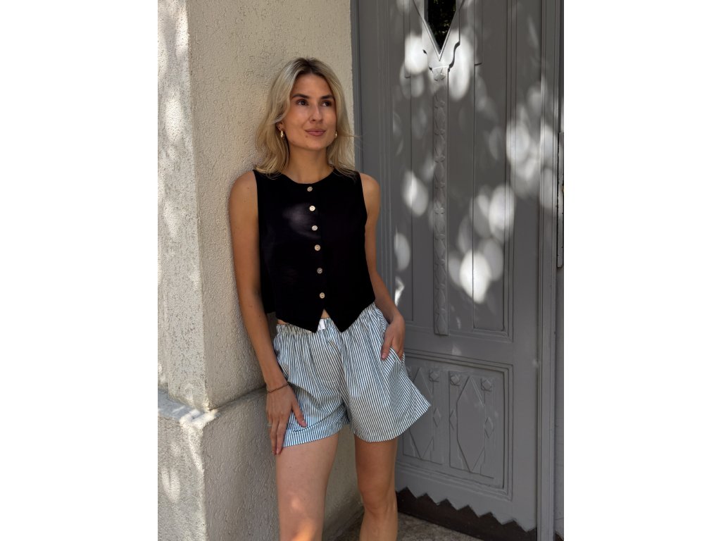 Top "vesta" s knoflíčky, které lze rozepnout.