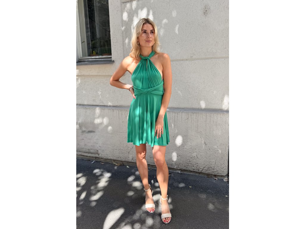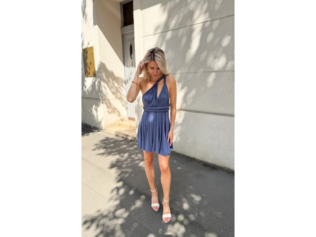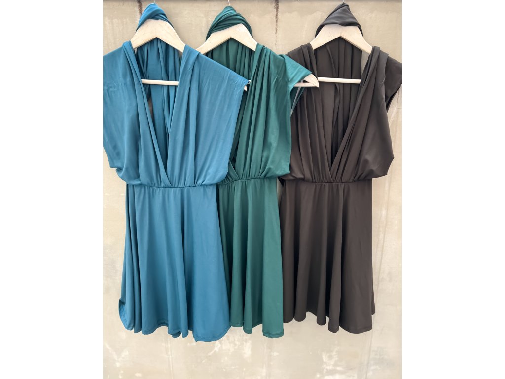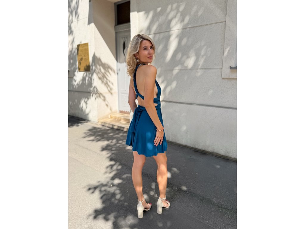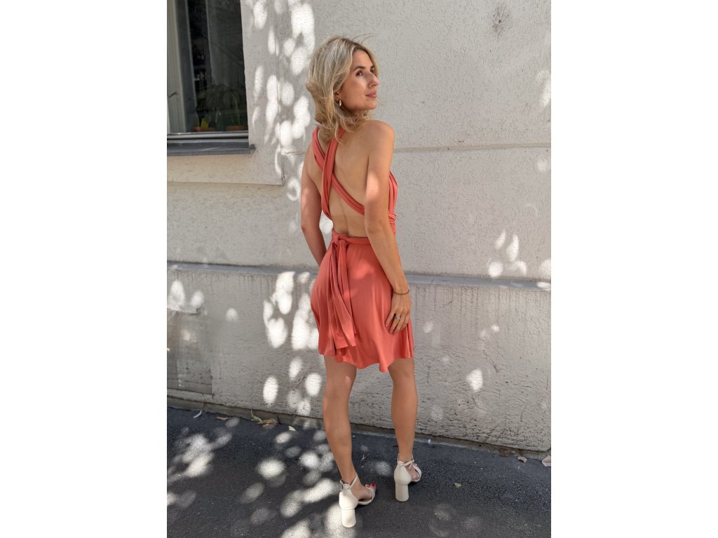 Krátké šaty s multifunkčním topem, který se dá zavázat na mnoho různých způsobů.