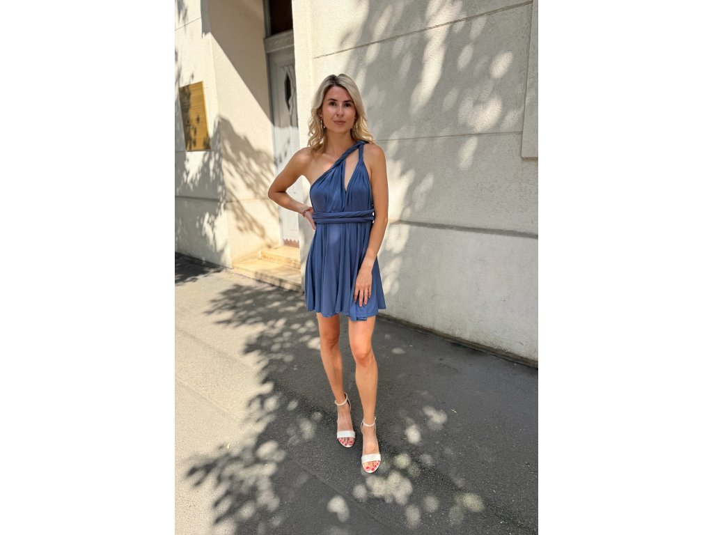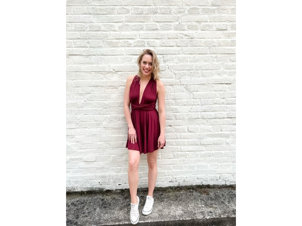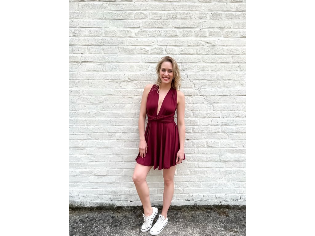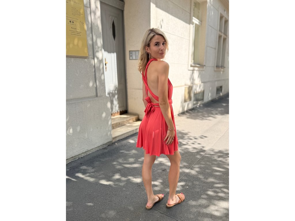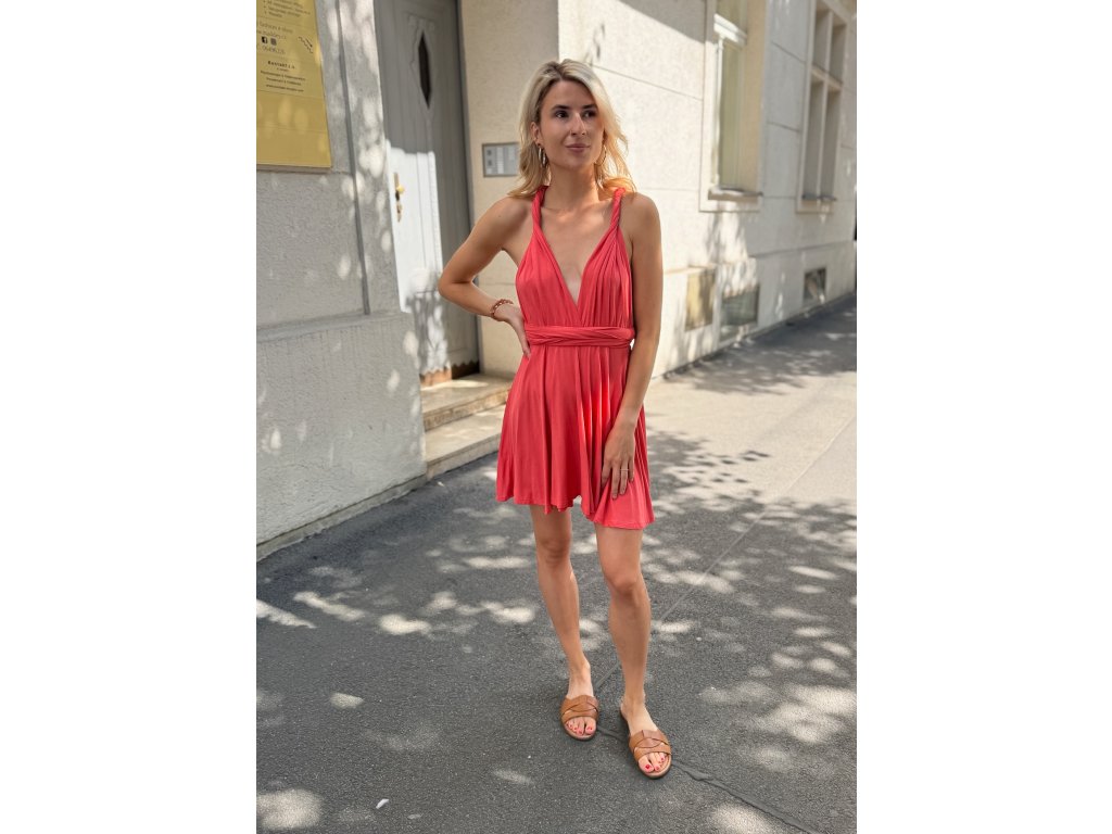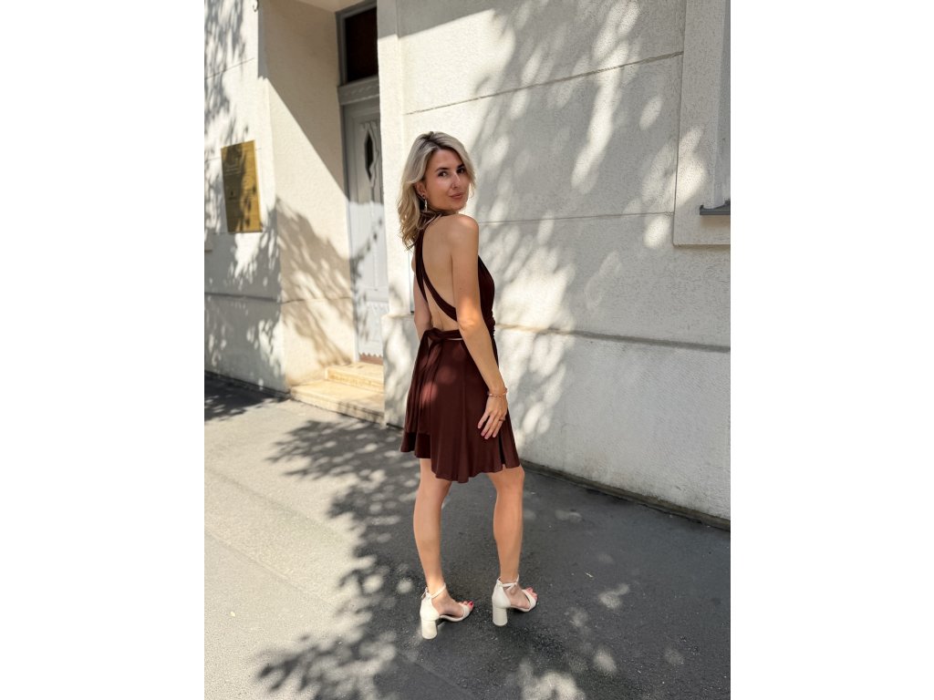Krátké šaty s multifunkčním topem, který se dá zavázat na mnoho různých způsobů.