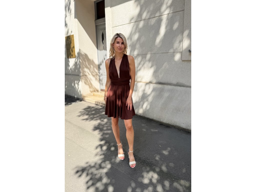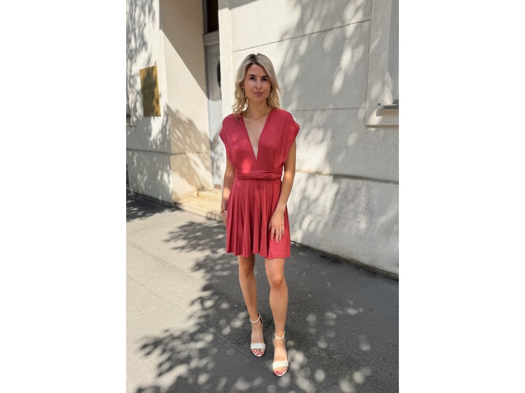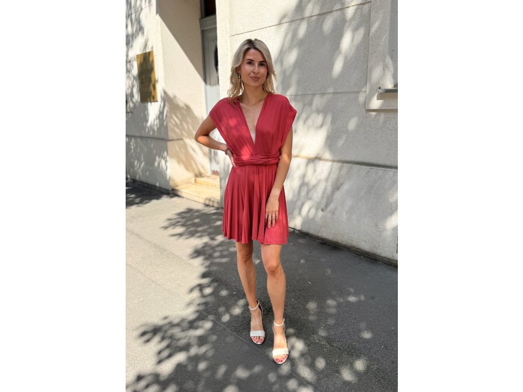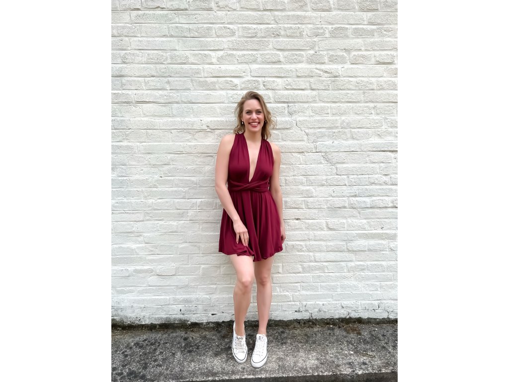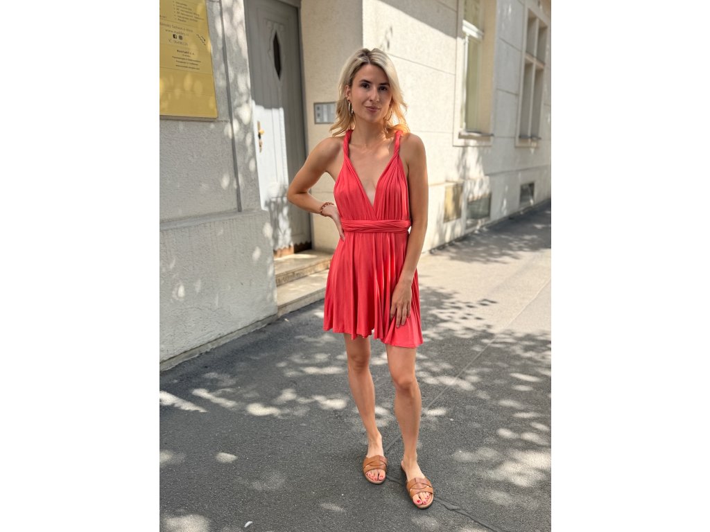 Krátké šaty s multifunkčním topem, který se dá zavázat na mnoho různých způsobů.